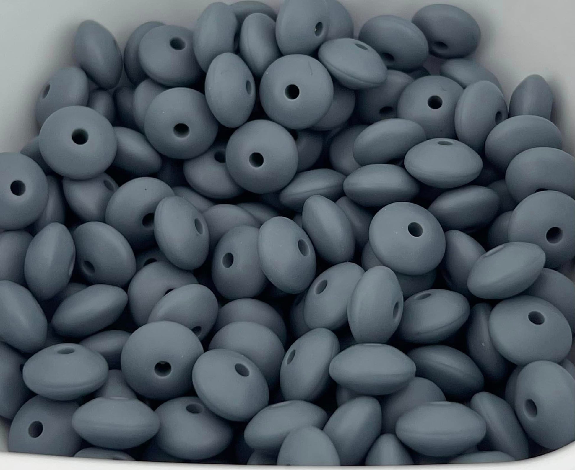 Bag of 100 12mm Dim Grey Solid Silicone Lentil Beads