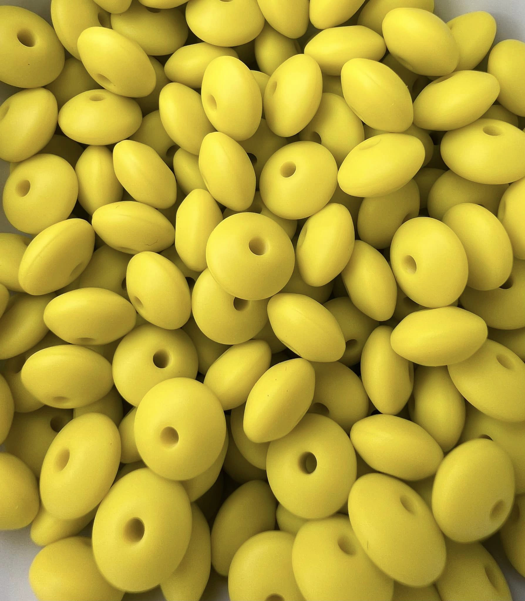 Bag of 100 12mm Happy Yellow Solid Silicone Lentil Beads