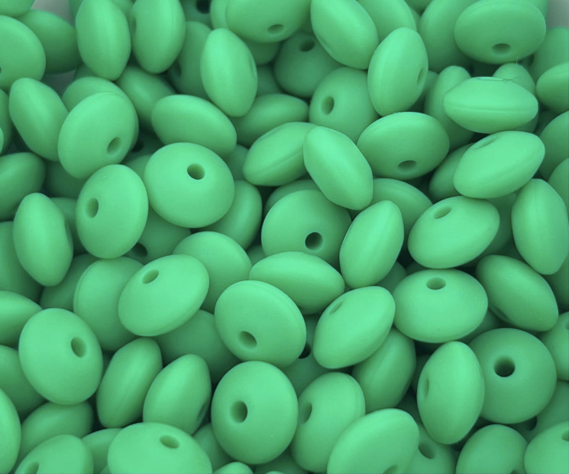 Bag of 100 12mm Kelly Green Solid Silicone Lentil Beads