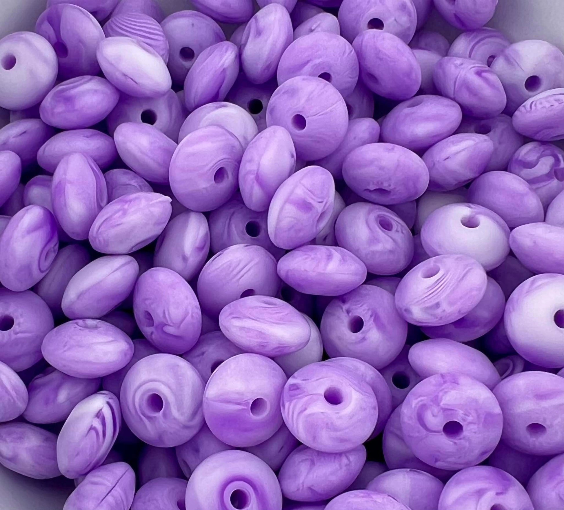 Bag of 100 12mm Marbled Purple Solid Silicone Lentil Beads