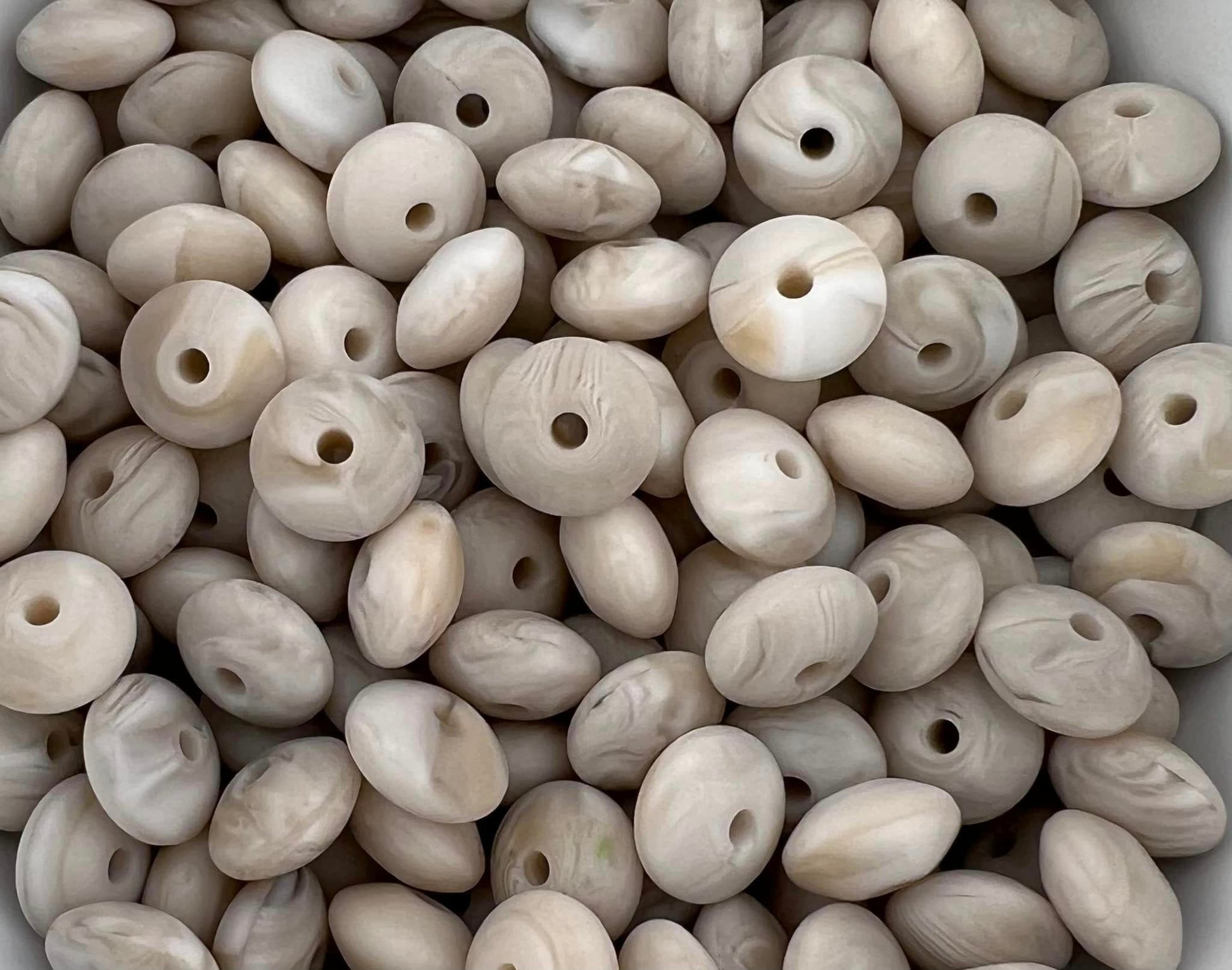 Bag of 100 12mm Marbled Tan Solid Silicone Lentil Beads