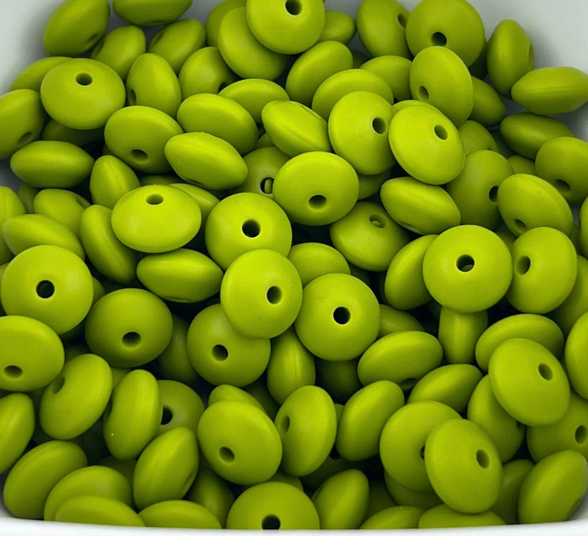 Bag of 100 12mm Moss Solid Silicone Lentil Beads