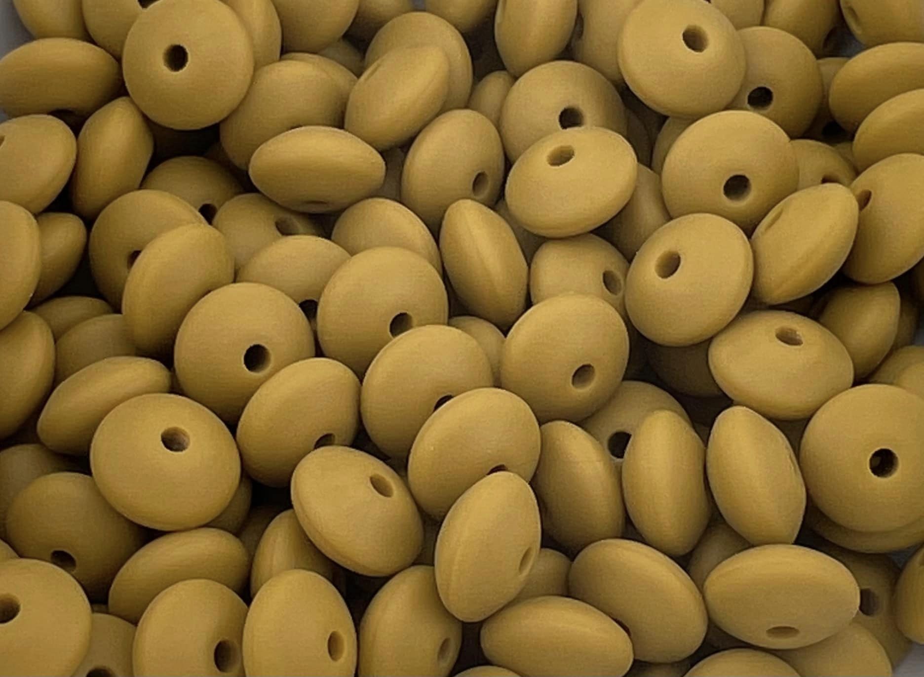 Bag of 100 12mm Olive Green Solid Silicone Lentil Beads