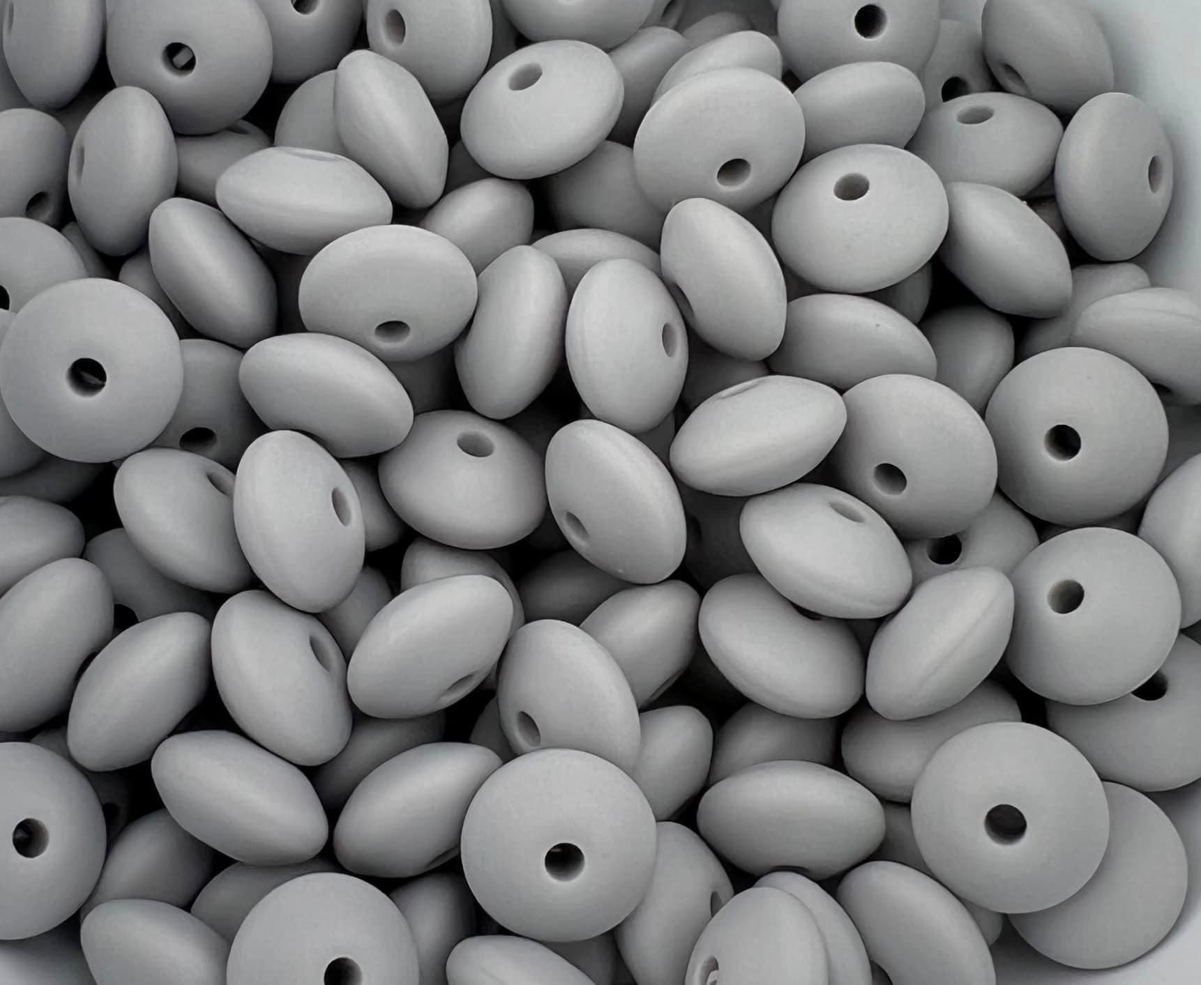 Bag of 100 12mm Smoke Solid Silicone Lentil Beads