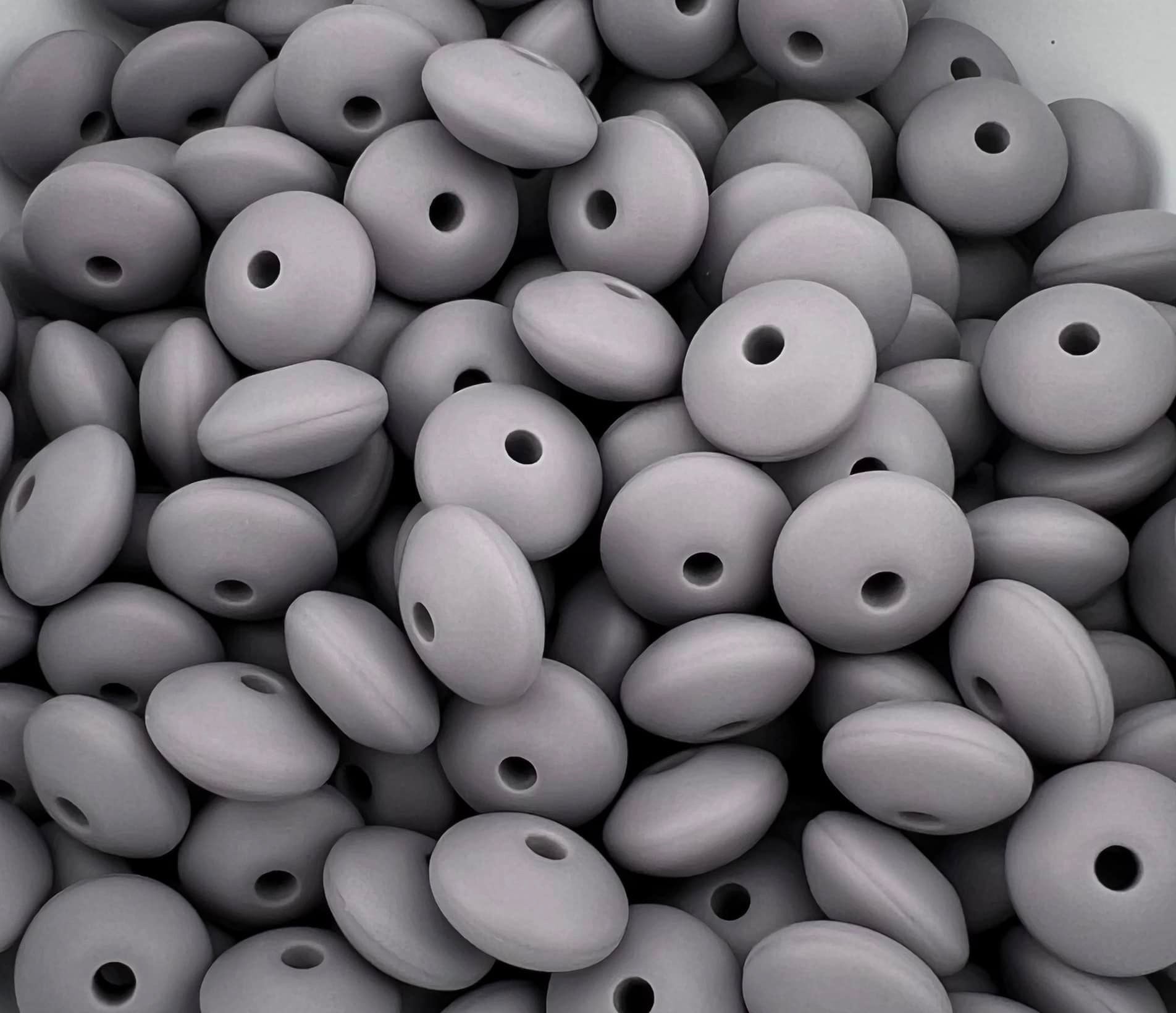 Bag of 100 12mm Twilight Grey Solid Silicone Lentil Beads