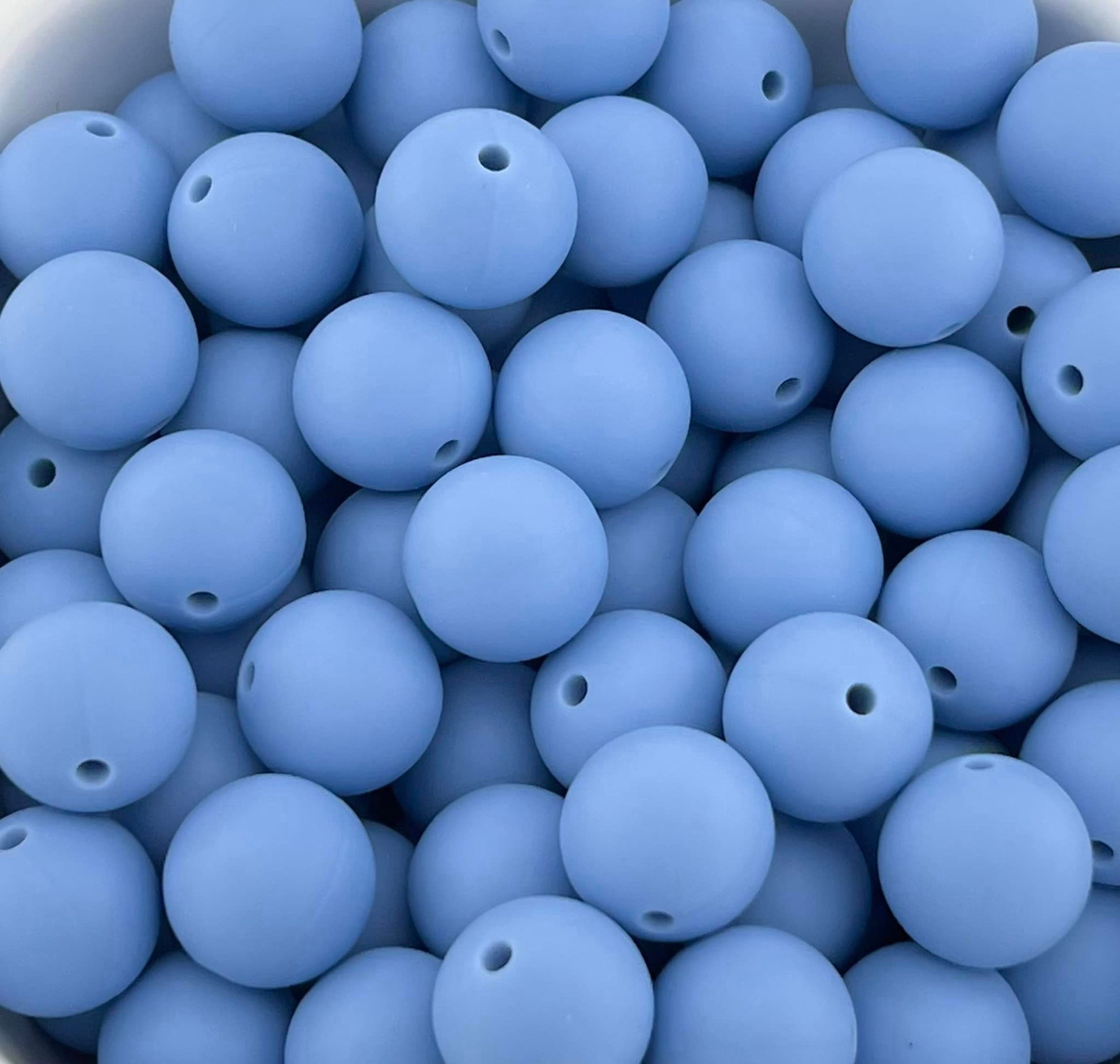 Pack of 100 15mm Arctic Blue Solid Silicone Beads