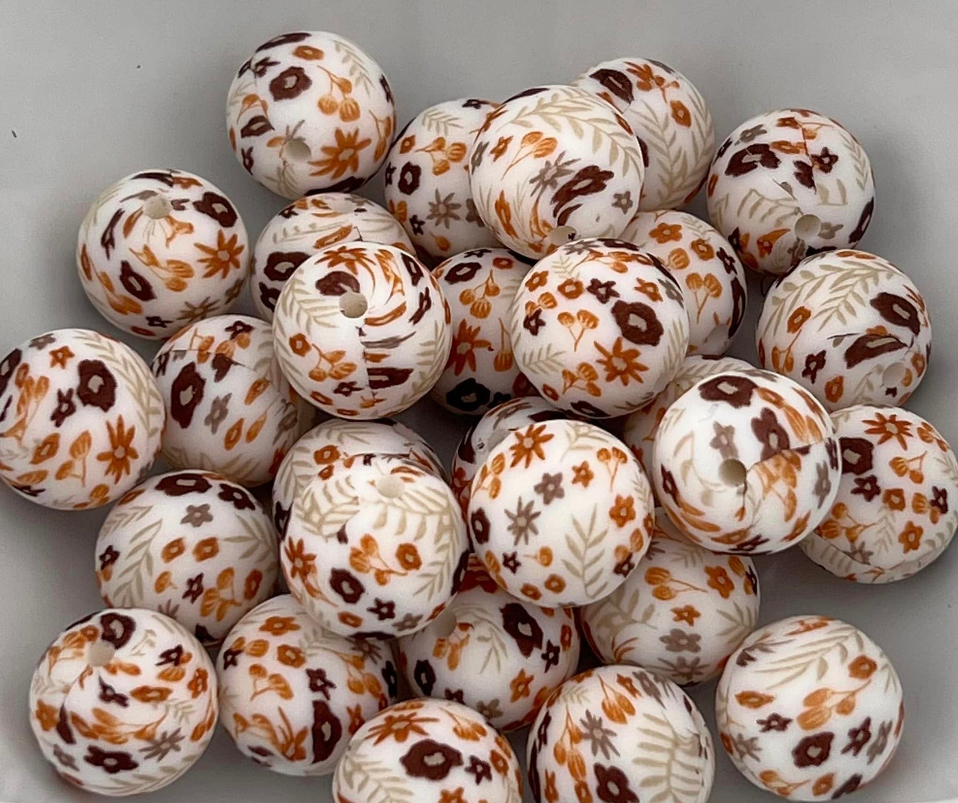So pretty! Fall Foliage on White 15mm Silicone Beads.