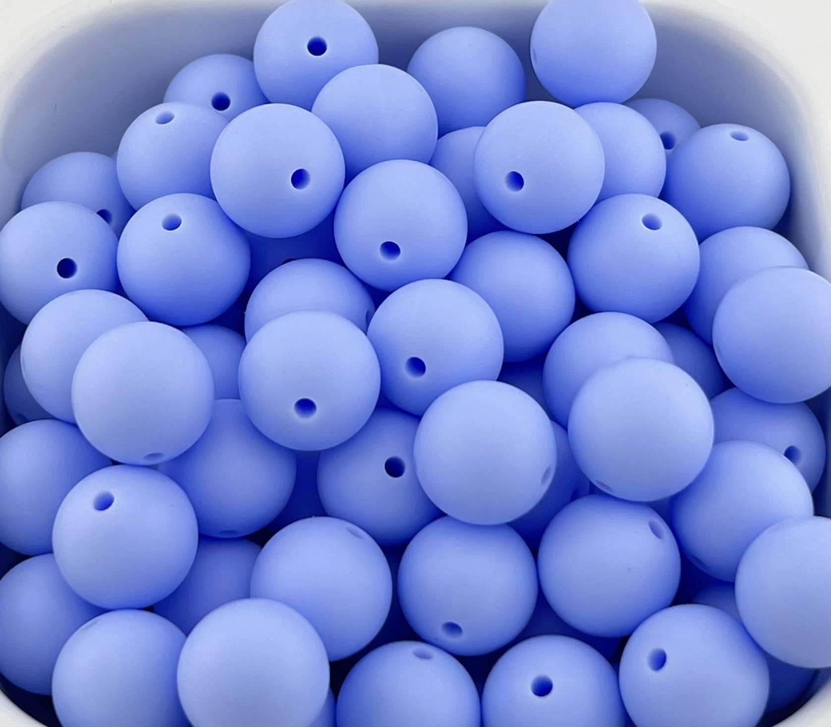 Beautiful Light Periwinkle 15mm Silicone Beads. Pack of 100 beads.