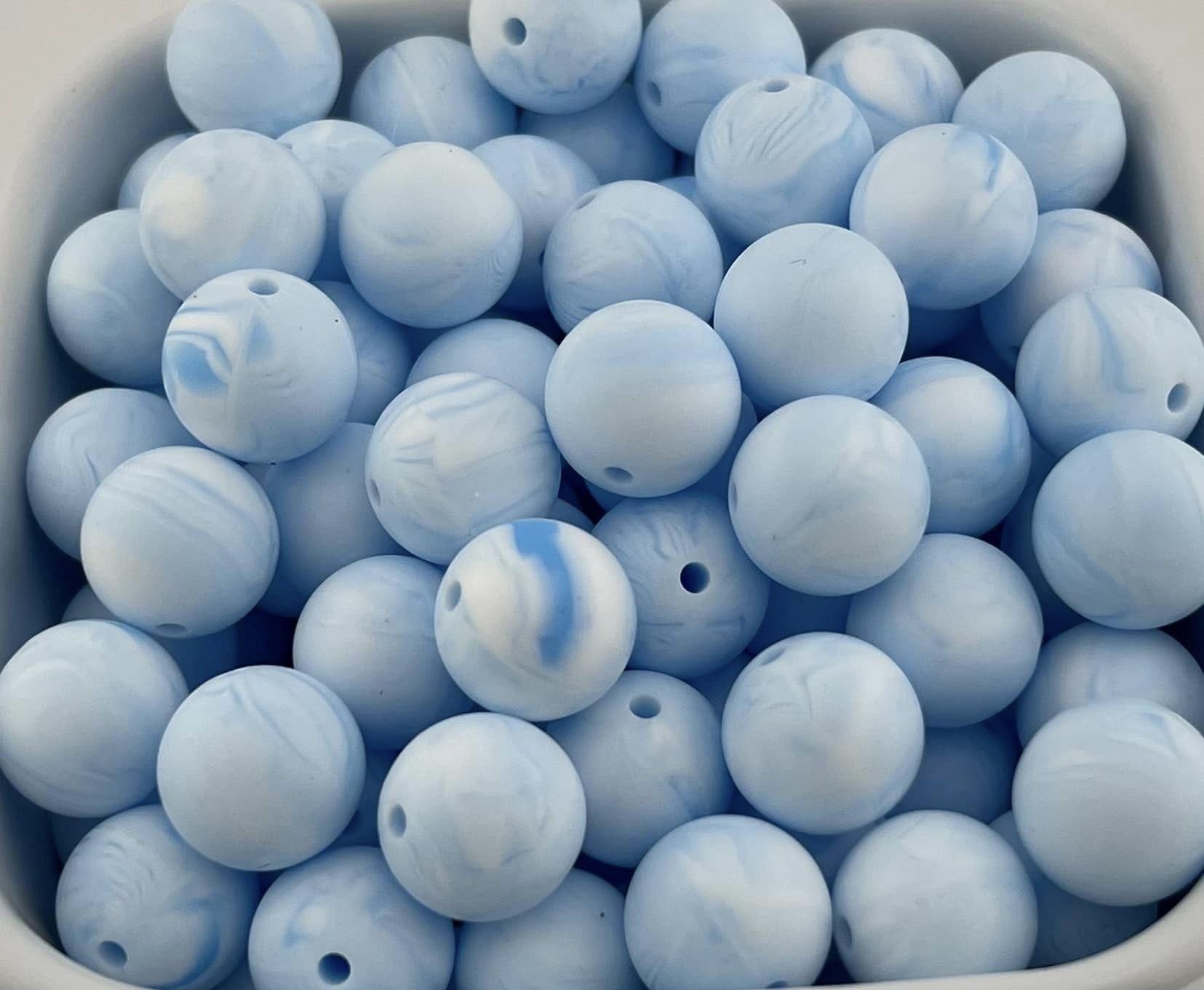 Beautiful Marbled Blue 15mm Silicone Beads pack of 100 beads.
