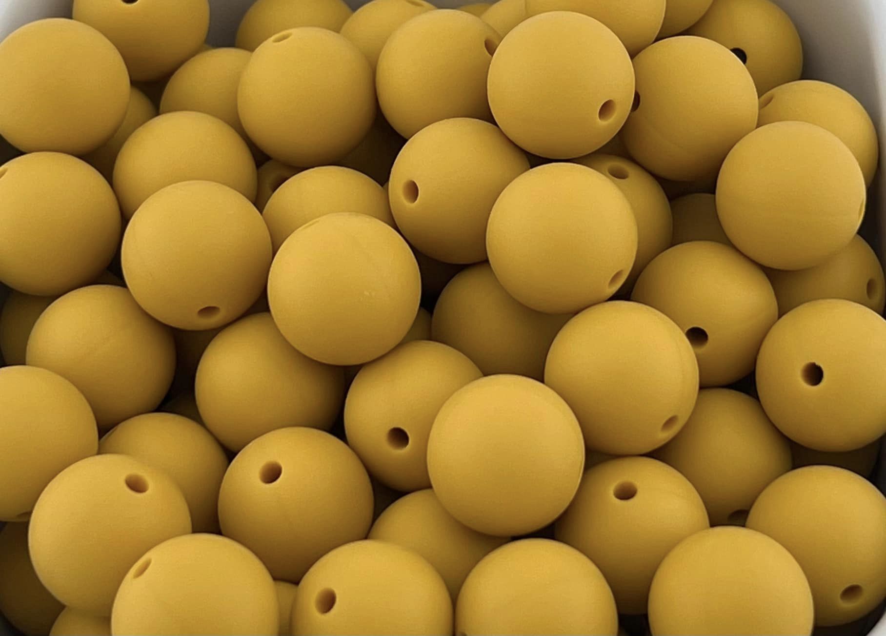 Beautiful Mustard 15mm Silicone Beads pack of 100 beads.