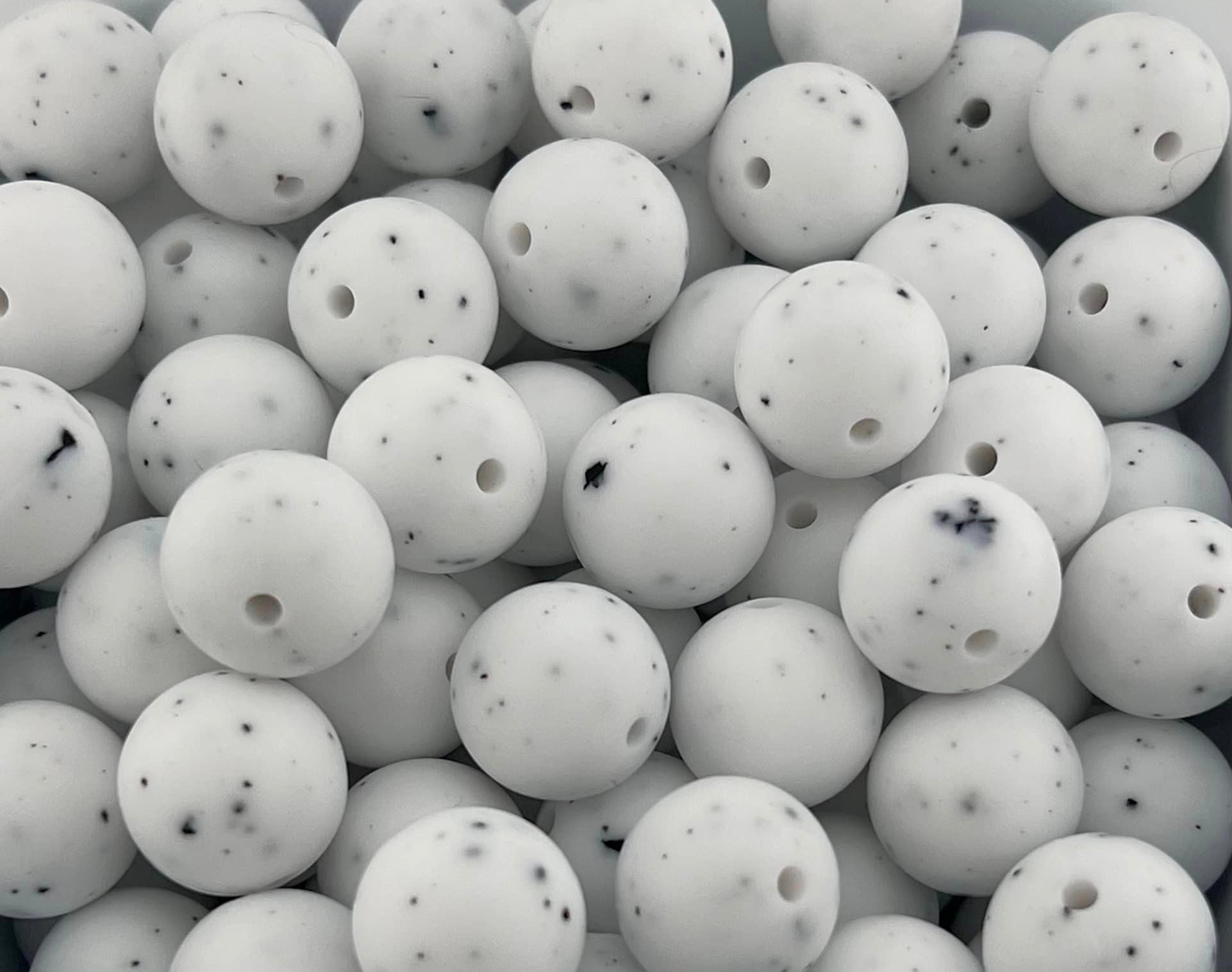 Beautiful White Granite 15mm Silicone Beads pack of 100 beads.