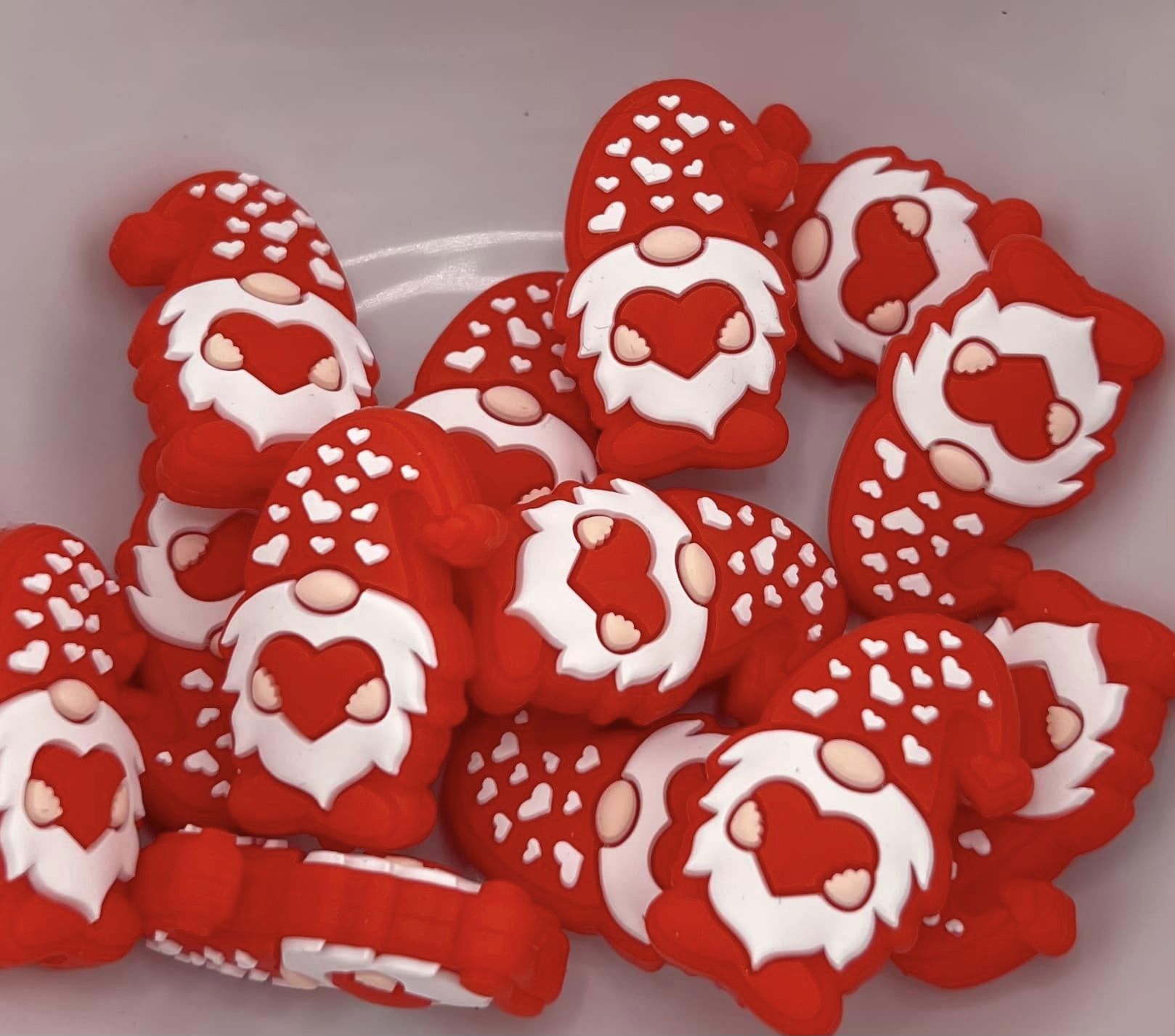 Red Gnome with Red Hat white hearts Focal